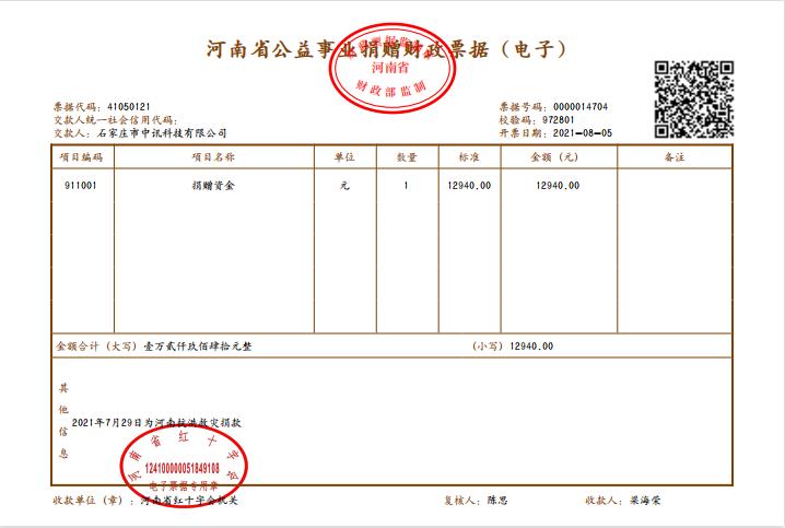 大家踊跃捐款,向河南省红十字会捐赠共计12940元,爱心驰援灾区,助力一线救灾,用心汇聚微光,让爱点亮希望,与灾区民众同心携手,共克时艰!河南省红十字会对于在此次援助河南防汛救灾活动中积极奉献爱心的行为表示肯定,赞扬这种“大爱无私,勇于奉献”的精神。