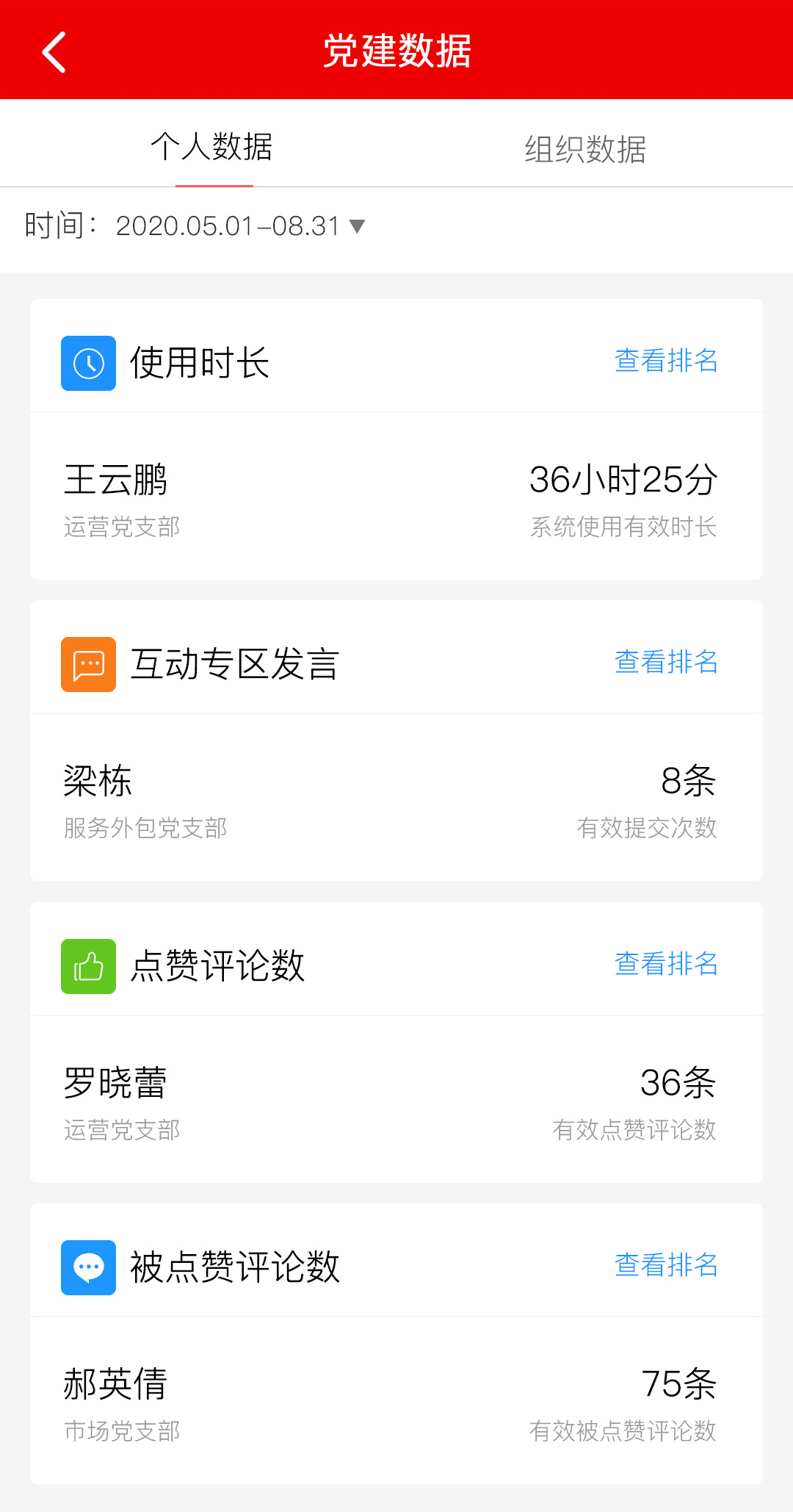 数字智能银河集团(galaxy)·智慧党建平台对所有党建工作轨迹进行记录,并设置相应积分,对《中国 共产党支部工作条例》中明确规定的党建工作作为党员的达标项,其他党建工作作为加分项, 分星级管理,平台自动统计分析,形成相应报表,个人、小组、支部排名一目了然,从而产生 自驱力,通过这些功能使党建工作得以更好的开展。